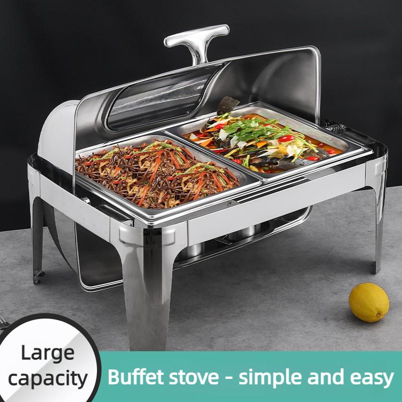 6L/9L Alcohol Stove Hotel Restaurant Flip Cover Insulated Stove Visible Dining Stove Large Capacity Stainless Steel Buffet Stove
