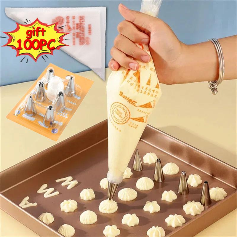 Einweg Spritzbeutel für Gebäck Süßigkeiten Düsenhülse DIY Sahne Ausdrückbeutel Kuchen Sahne Werkzeug Backzubehör (Spritzbeutel und Spritztülle)