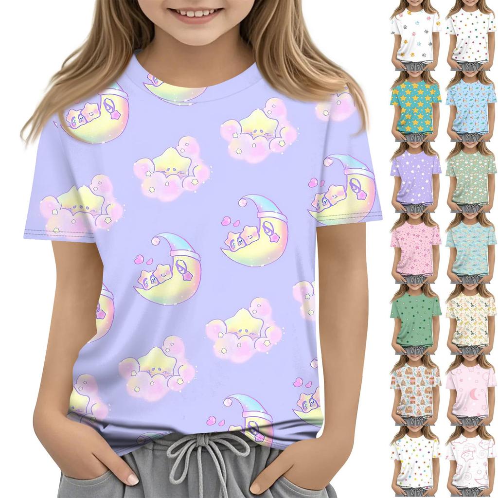 Kinder bedrucktes Rundhals Kurzarm Freizeit-T-Shirt
