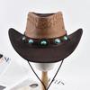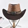Unisex 100% Leather Western Cowboy Hat Vintage Gentleman Jazz Hats For Men Panama Cowgirl Hat