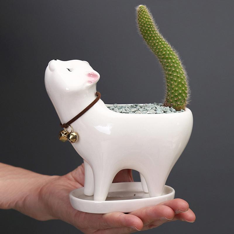 Cartoon-Katze Blumentopf Keramik Kreative Porzellan Blumenvase Für Terrasse Schreibtisch Dekoration Heimdekoration Innenhof Schlafzimmer