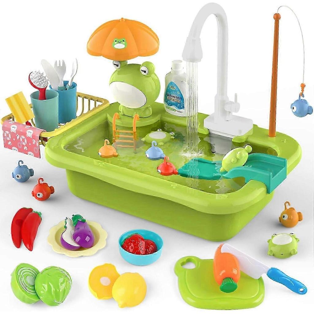 Spielspüle mit fließendem Wasser, Spielzeugspüle Kinder Küchenzubehör, Rollenspiel Lebensmittel Wasser Spielzeug für Jungen Mädchen 3 4 5 6 7 Jahre (Standard Edition)