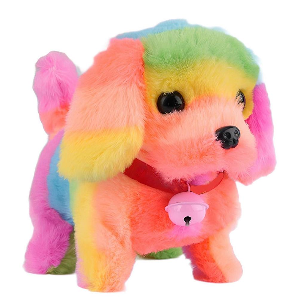 Electric Robot Dog Life Like Walking Plush Dog Fun Learning Toy For Preschool Kids Early Learning and Entertainment Fun Rainbow Colors