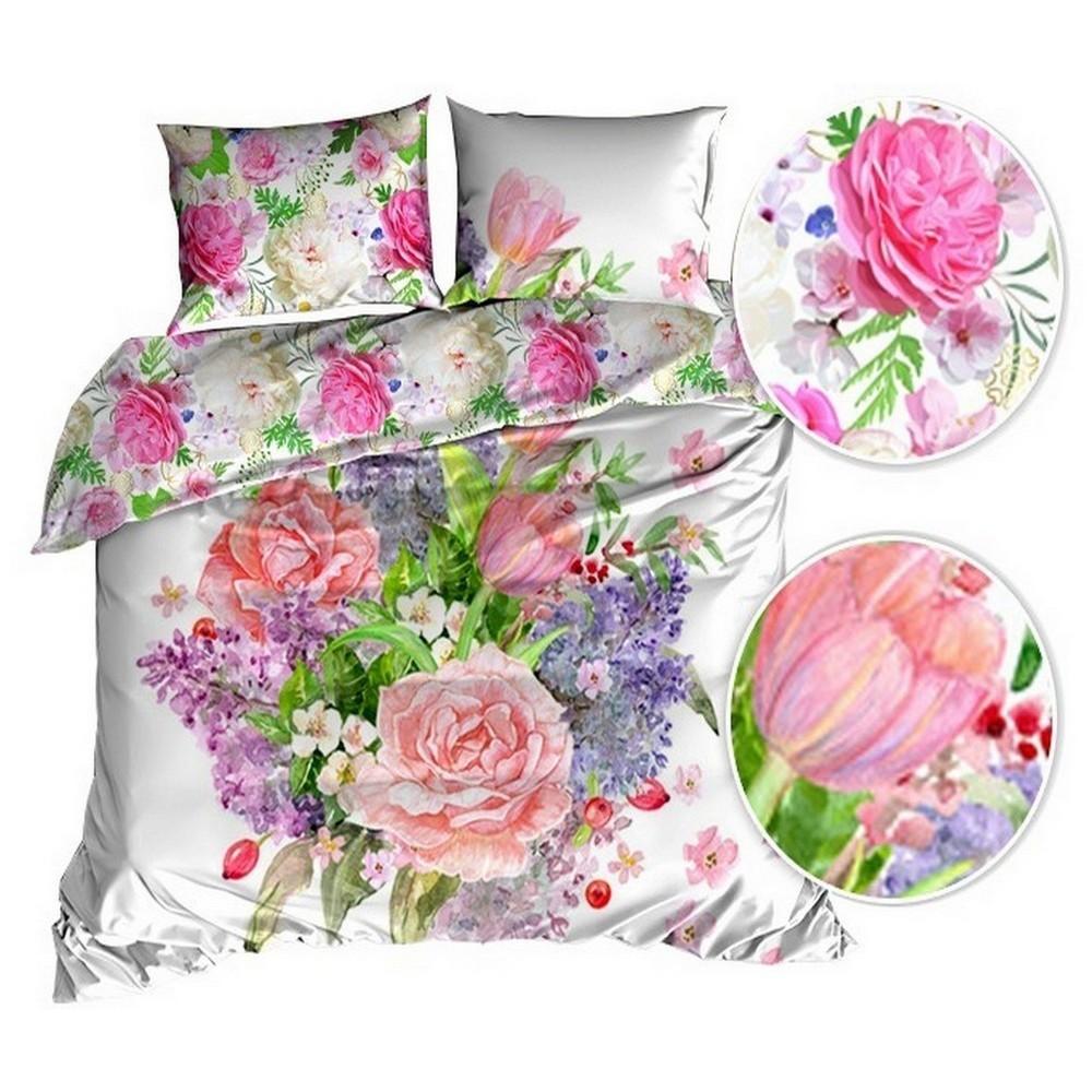Cotton satin bedding 160x200cm DOUBLE-SIDED - FLOWER BOUQUET