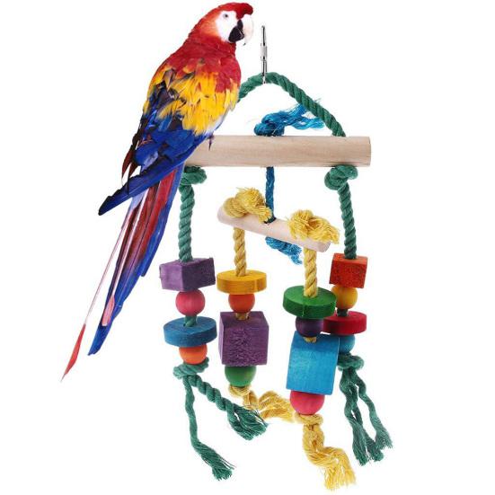 Bunter Holzständer Bar Block Seil Papagei Kletter Biss Schaukel Käfig Vogel Haustier Spielzeug