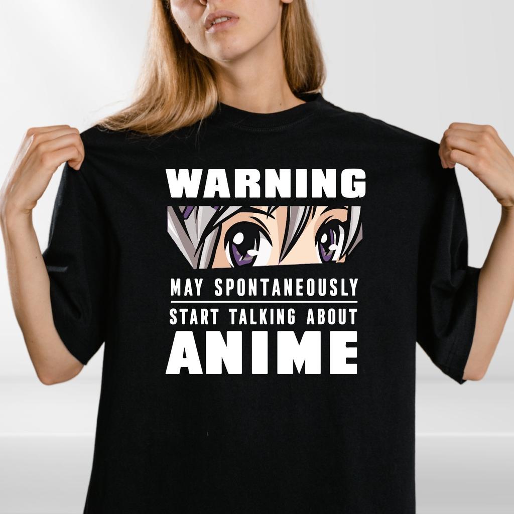 Warnung Könnte anfangen über Anime zu reden Lustiges Herren-T-Shirt Herren Damen T-Shirts Top 100% Baumwolle