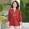 Sommer Neue Chinesische Stil Mittleren Alters Damen 3/4 Ärmel Bestickte Chiffon Bluse Elegantes Stehkragen Reißverschluss Oberteil