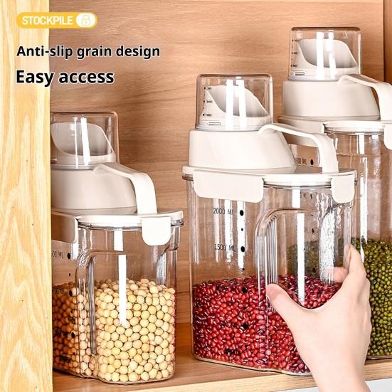 Sicherheitsmaterial in Lebensmittelqualität: Hergestellt aus hochwertigem, lebensmittelechtem Kunststoff, ist dieser Behälter sicher für den direkten Kontakt mit Reis, Getreide, Nüssen und Trockenfrüchten.. Es stellt sicher, dass keine schädlichen Stoffe in Ihre Lebensmittel gelangen, und schützt so die Gesundheit Ihrer Familie.. Die sichere Beschaffenheit des Materials bietet Sicherheit für die tägliche Aufbewahrung von Lebensmitteln.