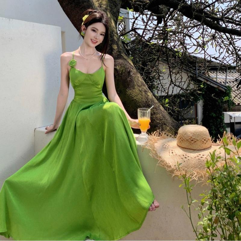 Large Halter Adjustable Cross Strap Vacation Suspender Long Skirt Island Large Skirt Dress