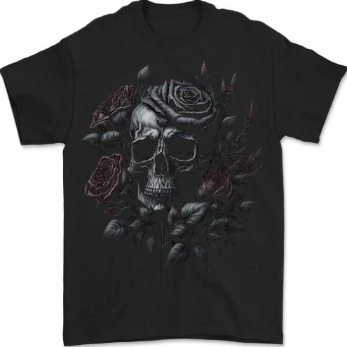 Ein Gothic-Totenkopf mit Blumen Rosen Herren T-Shirt 100% Baumwolle