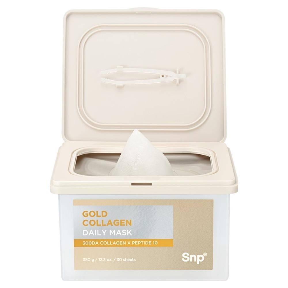 The SNP Gold Collagen Daily Mask is a convenient, high-capacity mask pack designed for those who want effortless anti-aging care every day. Each box contains 30 sheets soaked in an essence enriched with 24K Gold and 500Da Low-Molecular Collagen, which work together to restore skin elasticity and provide a healthy, luminous glow. The ultra-fine Tencel sheet adheres perfectly to the face, delivering a concentrated "daily boost" of nutrients in just 10–20 minutes, making it the perfect solution for revitalizing tired, dull skin.
