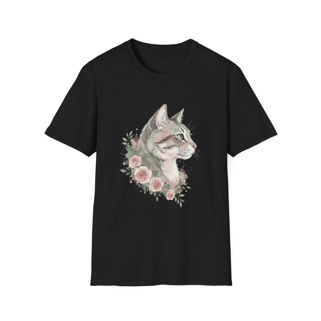 Cat Floral Watercolor Boho Black Tee Nature Aesthetic T-Shirt