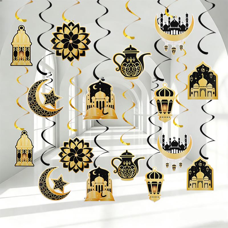8/16Pcs Ramadan Hanging Spirals Eid Mubarak Moon Star Swirls Banner Garland 2026 Islamic Muslim Party Home Decoration Supplies