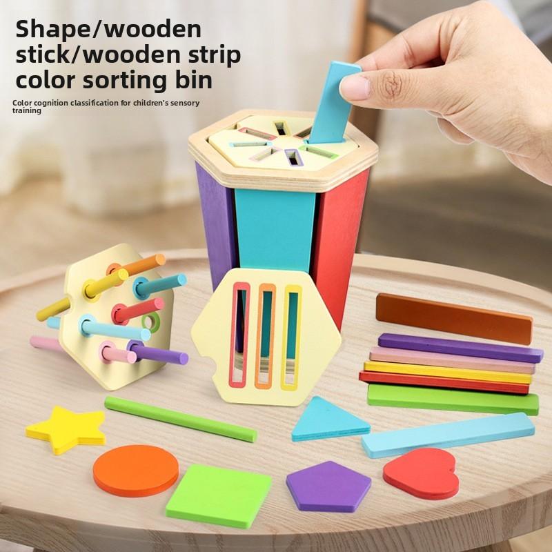 Holzfarbsortierbecher Lernspielzeug für Kleinkinder und Früherziehung