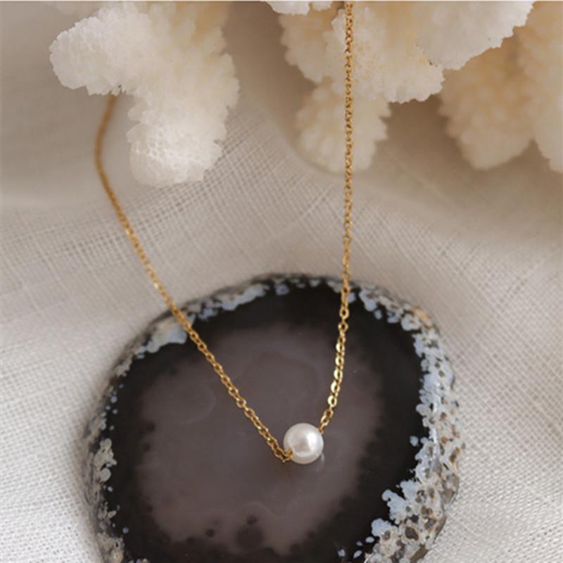 European & American Pearl Pendant Gold Necklace: Women's Simple Luck Beads Stainless Steel Clavicle Chain