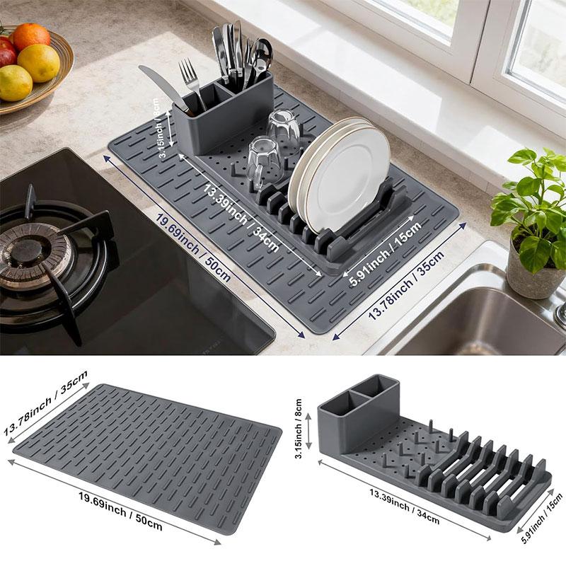 Faltbare rutschfeste Geschirrtrockenmatte Mehrzweck-Silikon-Geschirrtrockenständer Aufbewahrungshalter Hitzeschutz-Untersetzer Küchenutensilien