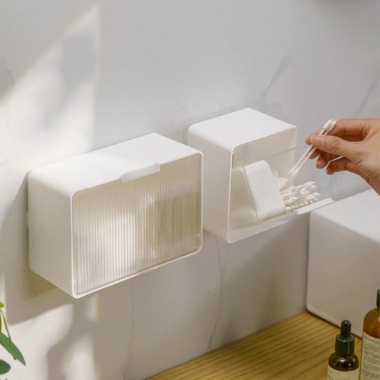 Elegantes halbtransparentes Design: Gefertigt aus vertikal gemaserten, halbtransparenten Paneelen in dezenten, neutralen Tönen, vereint die Box Praktikabilität mit einem stilvollen Erscheinungsbild.. Seine minimalistische Ästhetik ergänzt verschiedene Einrichtungsstile und verleiht Badezimmern, Schminktischen oder Waschtischbereichen einen Hauch von Raffinesse.