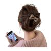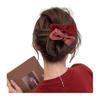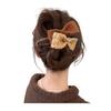 The double-layer splicing bow design blends plush/wool base with mixed-color gauze and check patterns for a layered, sweet yet sophisticated look.
