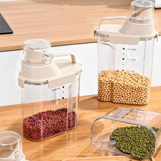 Sicherheitsmaterial in Lebensmittelqualität: Hergestellt aus hochwertigem, lebensmittelechtem Kunststoff, ist dieser Behälter sicher für den direkten Kontakt mit Reis, Getreide, Nüssen und Trockenfrüchten.. Es stellt sicher, dass keine schädlichen Stoffe in Ihre Lebensmittel gelangen, und schützt so die Gesundheit Ihrer Familie.. Die sichere Beschaffenheit des Materials bietet Sicherheit für die tägliche Aufbewahrung von Lebensmitteln.