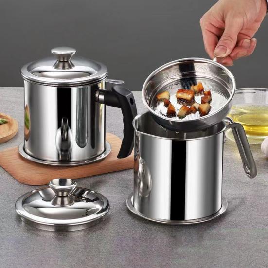 Design aus Edelstahl mit großer Kapazität: Dieser aus hochwertigem Edelstahl gefertigte Öllagerbehälter bietet ein geräumiges Inneres, ideal zum Filtern und Lagern großer Mengen Öl oder Nudeln.. Seine robuste Konstruktion gewährleistet eine langlebige Nutzung ohne Rost oder Korrosion und macht es perfekt für schwere Küchenarbeiten und die Zubereitung großer Mengen von Lebensmitteln.
