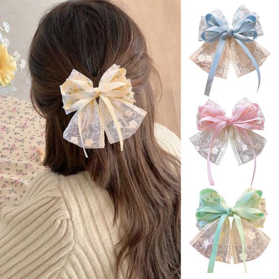 Verziert mit einem floralen Netzrücken, schleifen in Macaron-Farben und milchig-weißer Spitze, strahlt es einen frischen, pastoralen und französischen mädchenhaften Charme aus, perfekt für den Sommer.. Das große Schleifendesign kann auf verschiedenen Frisuren befestigt werden – am Kopf, an den Seiten, bei Zöpfen oder Dutt – und passt sowohl zu Prinzessinnenröcken, Schuluniformen als auch zu Freizeitoutfits..