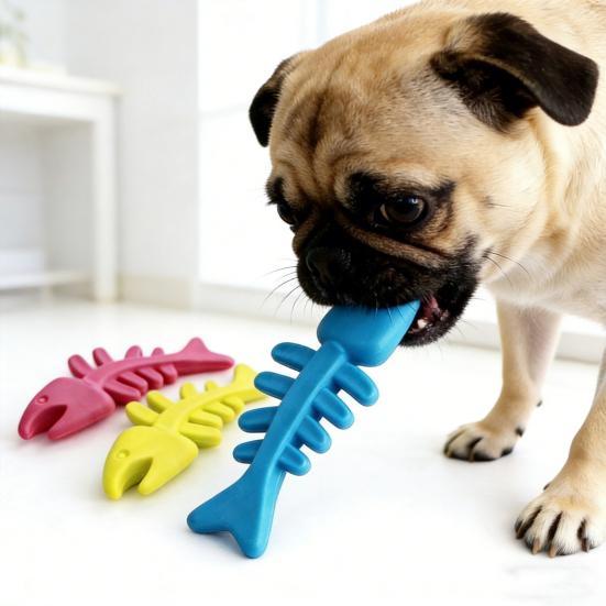 Gummi Knochen Hundespielzeug Fischgrätenform Hundekauspielzeug Zahnpflege Spielzeug für aggressive Kauer Interaktives Training Apportieren