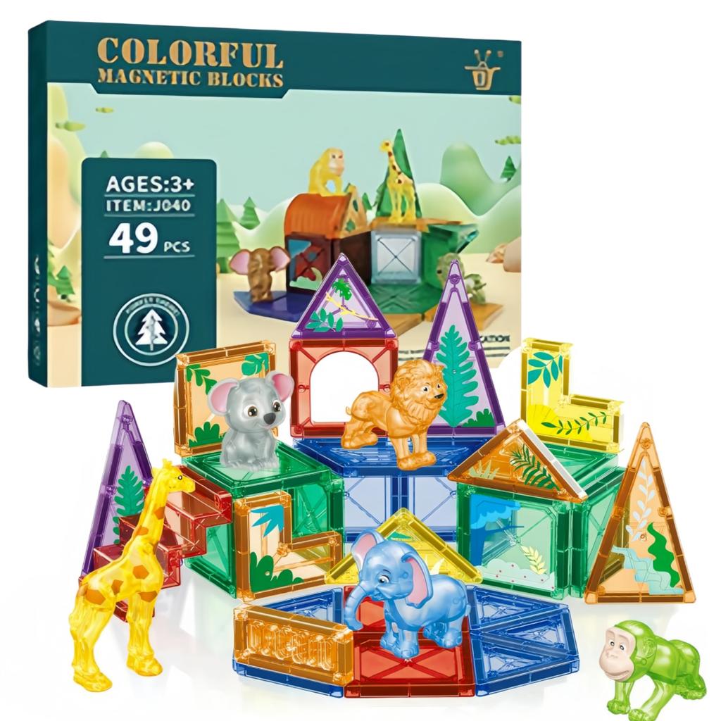 Magnetisches Baustein-Set, 90 Teile, Thema Waldtiere, Lernspielzeug für Kinder, Fördert Feinmotorik & Vorstellungskraft