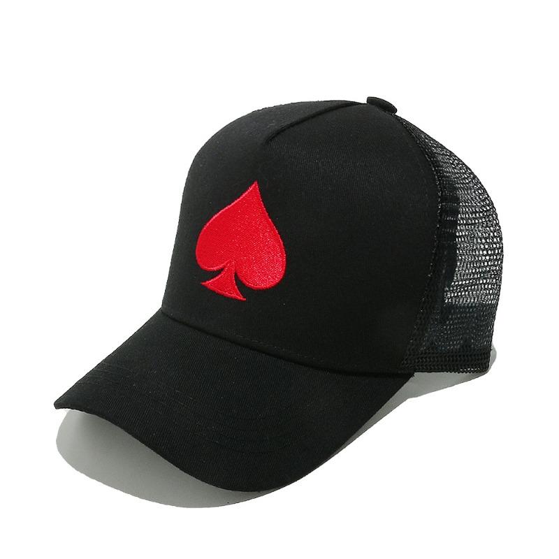 Grenzüberschreitende TEMU Sonnenhut, Hip-Hop personalisierte Pfirsichherz Poker Baseballkappe, Mesh-Kappe für Männer und Frauen, verstellbar