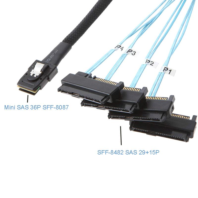 Mini SAS 36P SFF-8087 to SFF-8482 SAS 29+15P SATA Data Transmit Cable Cord Adapter Wire Converter for Server Computer Cable