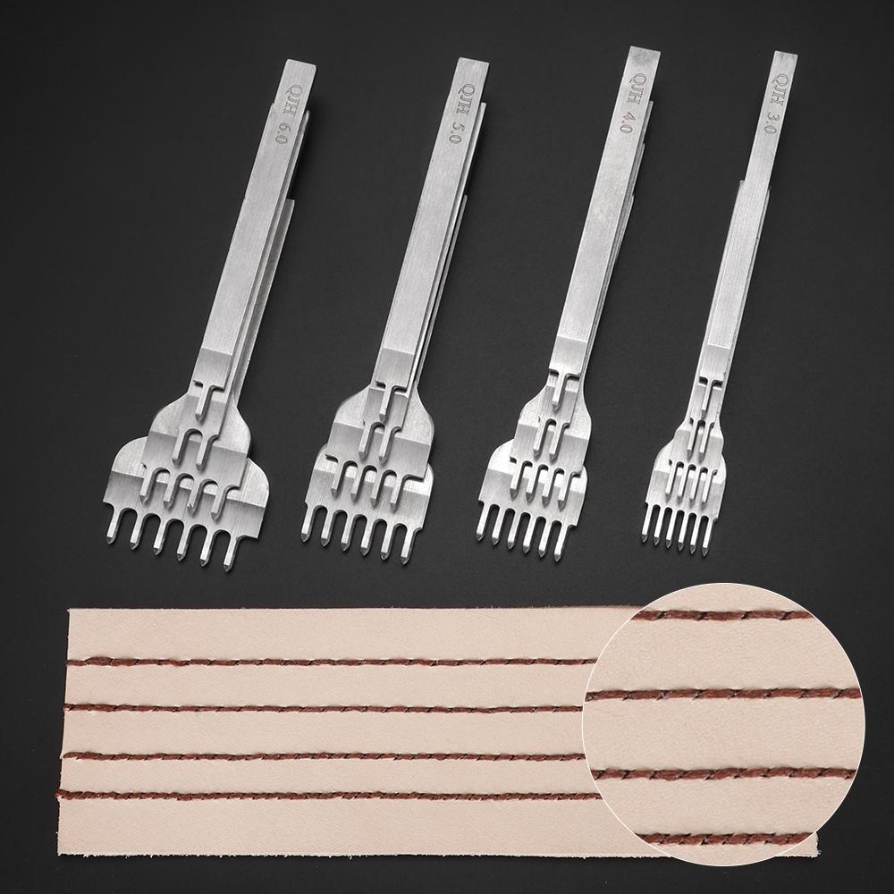 4pc/set Stainless Steel Rhombus Sewing & Punching Tool Set, DIY Stitching Chisel Set, Professional Leather Craftwork Punch Kit