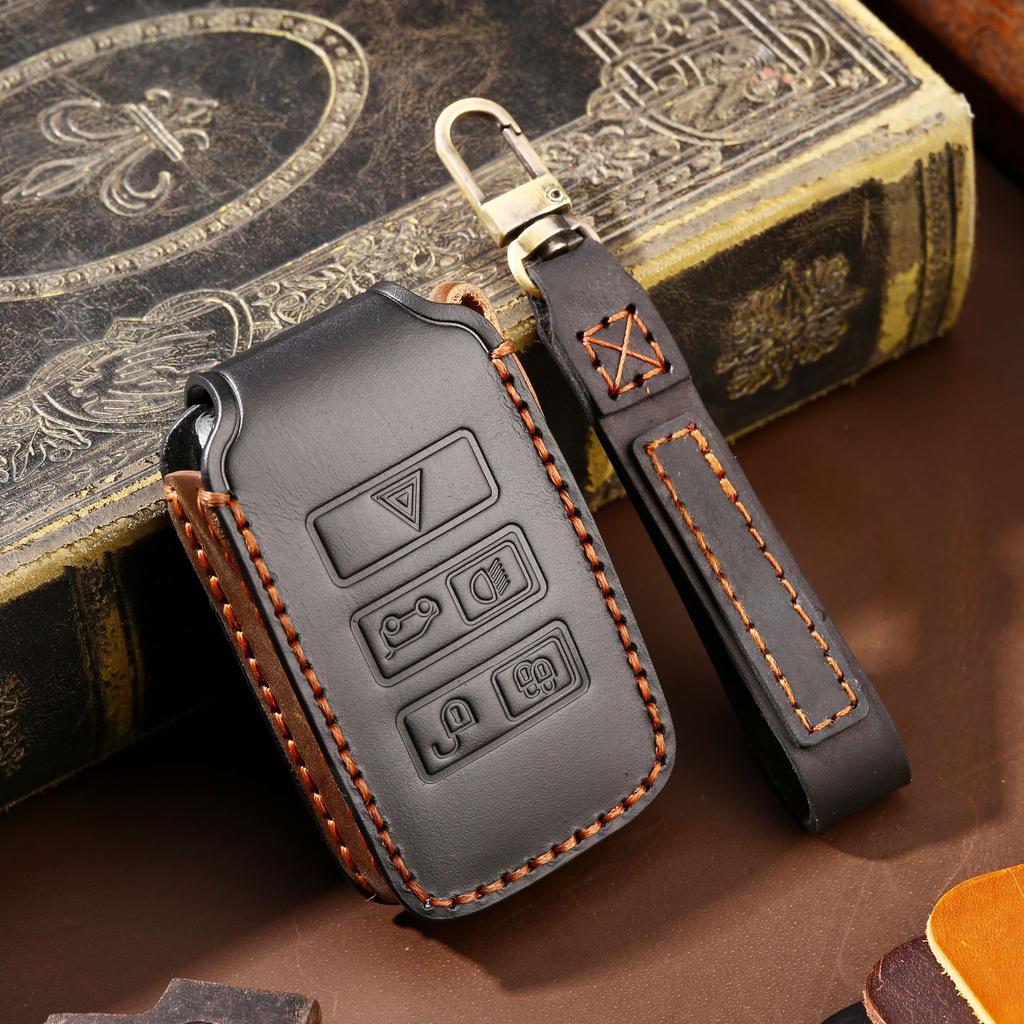 Top Grain Leather Key Case for Range Rover Discovery Defender with Leather Strap, Anti-Scratch Full Protection