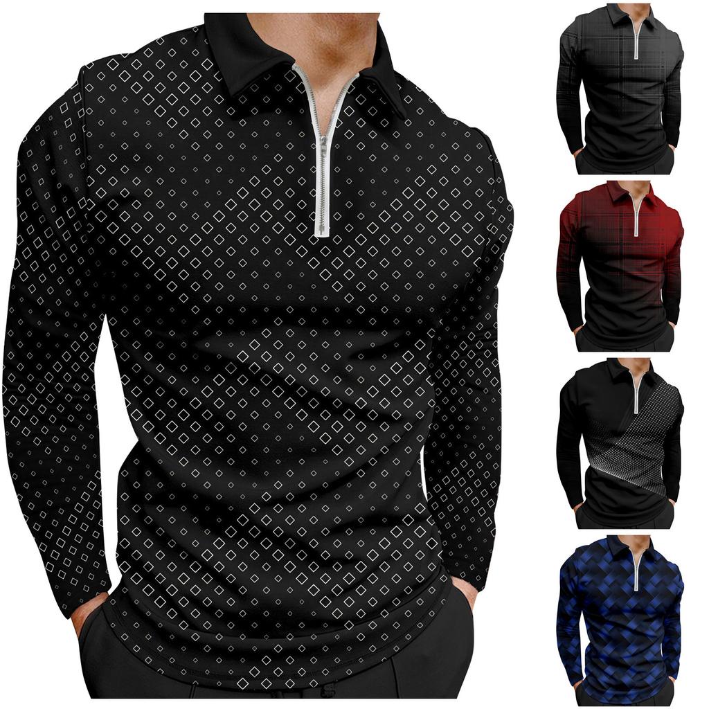 Herren-Revers-Langarm-bedrucktes Freizeit-Oberteil, lockeres Sport-Revers-Hemd