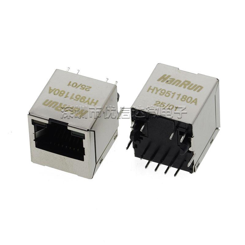 RJ45 180° Vertical Network Socket with LED & Filtered Isolation Transformer