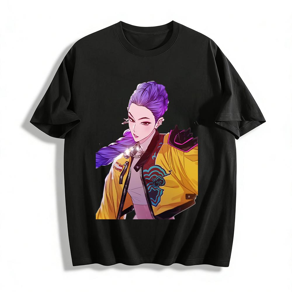 Cool Chinese Style Purple Hair Girl Print Crop Top Streetwear Rivet Shoulder Design Navel-exposed Jacket Pure cotton T-shirt