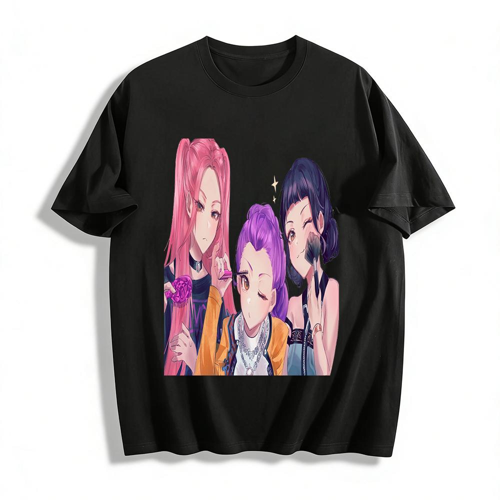Anime Makeup Girls Print T-shirt Casual Cool Style Top Trendy Streetwear For Teens And Young Adults Pure cotton T-shirt