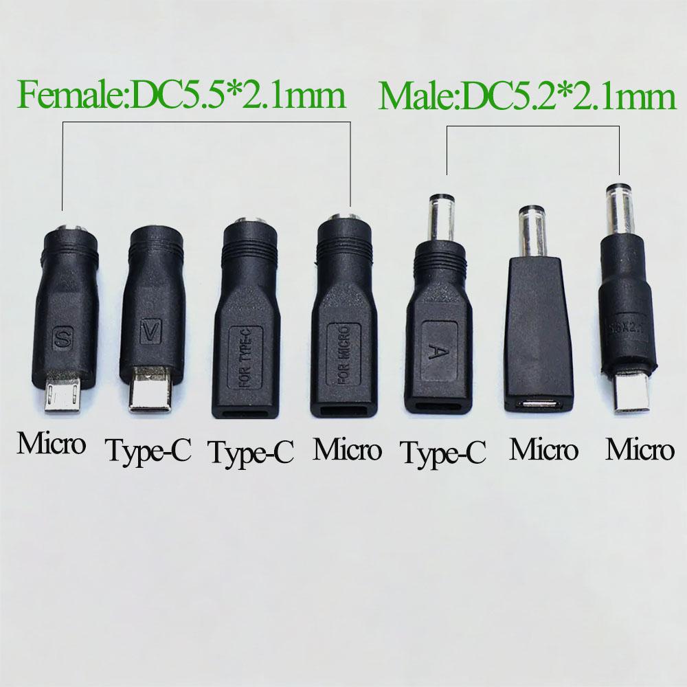 1PCS DC Plug 5.5x2.1mm To Type-C Miro USB Power Supply Connector Jack 5V Female Male USB C to 5.5*2.1 MM Adapter Plug