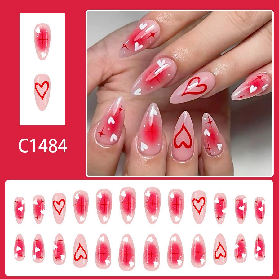 Süßes Herz Stern Glänzend Mittlere Mandel Falsche Nägel 24 Stück Valentinstag Rosé Ombre Damen Press-On Nägel