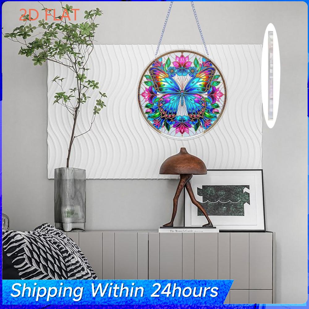 (Mandala /Lila Mandala/Kolibri-Blume/Schatzstrauß/Lavendelstrauß/Schmetterlingsblume/Schmetterling /Lila Schmetterling/Sonnenblumen-Schmetterling)--Diamond Painting HängeanhängerBlume Vogel Schmetterling DIY 2D Flach Acryl Diamond Painting Hängeanhänger Doppelseitiger Diamant 24cm Strass Diamantkunst Fensteranhänger für Erwachsene Zuhause Garten Wand Tür Hängend