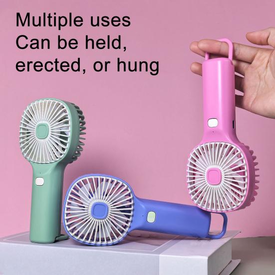 This handheld fan offers three adjustable wind speeds, from gentle breezes to powerful airflow, catering to your daily cooling and rapid refreshment needs. Its built-in hanging buckle allows versatile use—handheld, upright on a desk, or hung—perfect for commuting, camping, or home use.