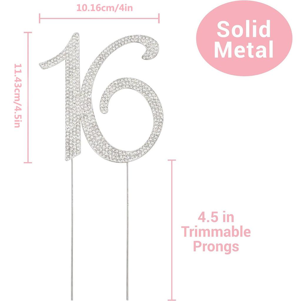 16 Silber Metall Kuchenaufsatz - Premium Sweet 16 Geburtstagsparty Funkelnde Strass Dekoration Macht ein Tolles Mittelstück