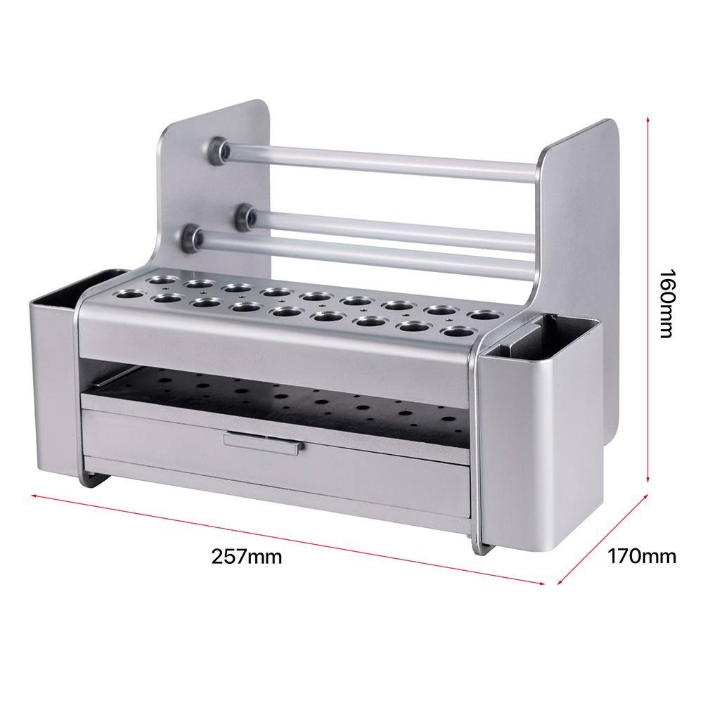 Ein Mehrzweck-Aufbewahrungsregal für häufig verwendete Wartungswerkzeuge. Der 4-Schubladen-Teiler kann kleine Werkzeuge und Zubehör aufbewahren.. Design mit 18 großen Löchern + 8 kleinen Löchern, kann Schraubendreher, Pinzetten usw. aufnehmen. 4 Säulen können Draht, Zangen usw. aufhängen. Seitenablage für Pinsel, Spachtel, Schnitzmesser usw.
