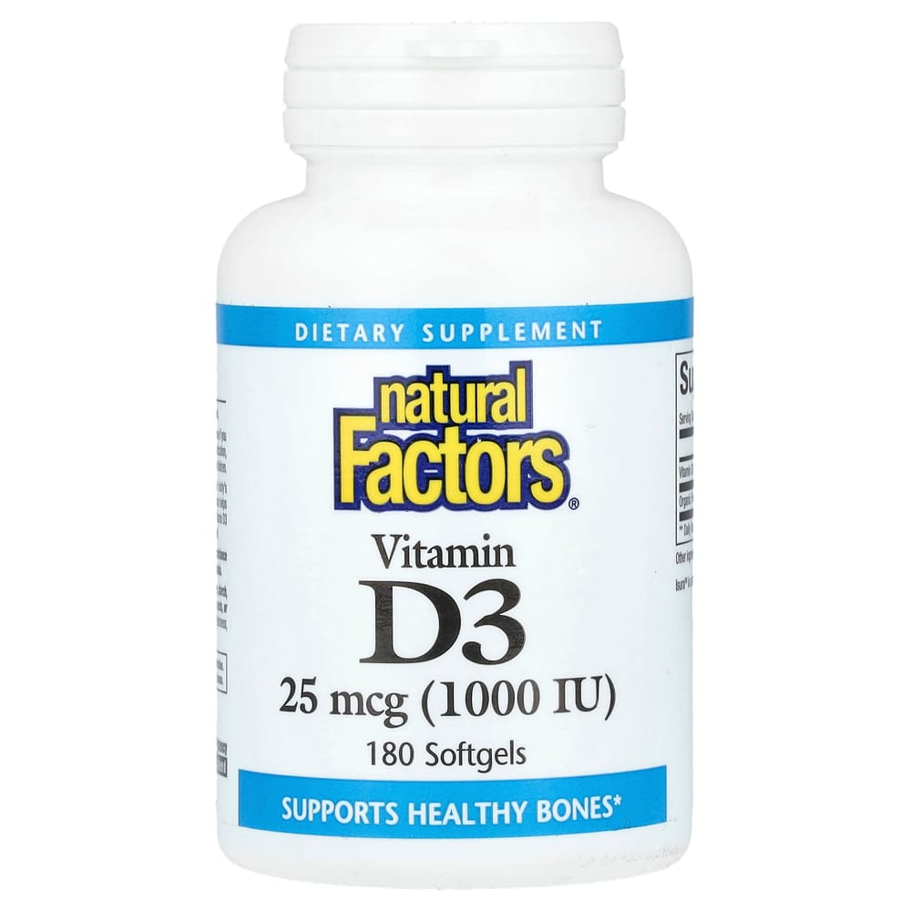 Natural Factors Vitamin D3 25mcg (1000IU) Softgels, 180 Count