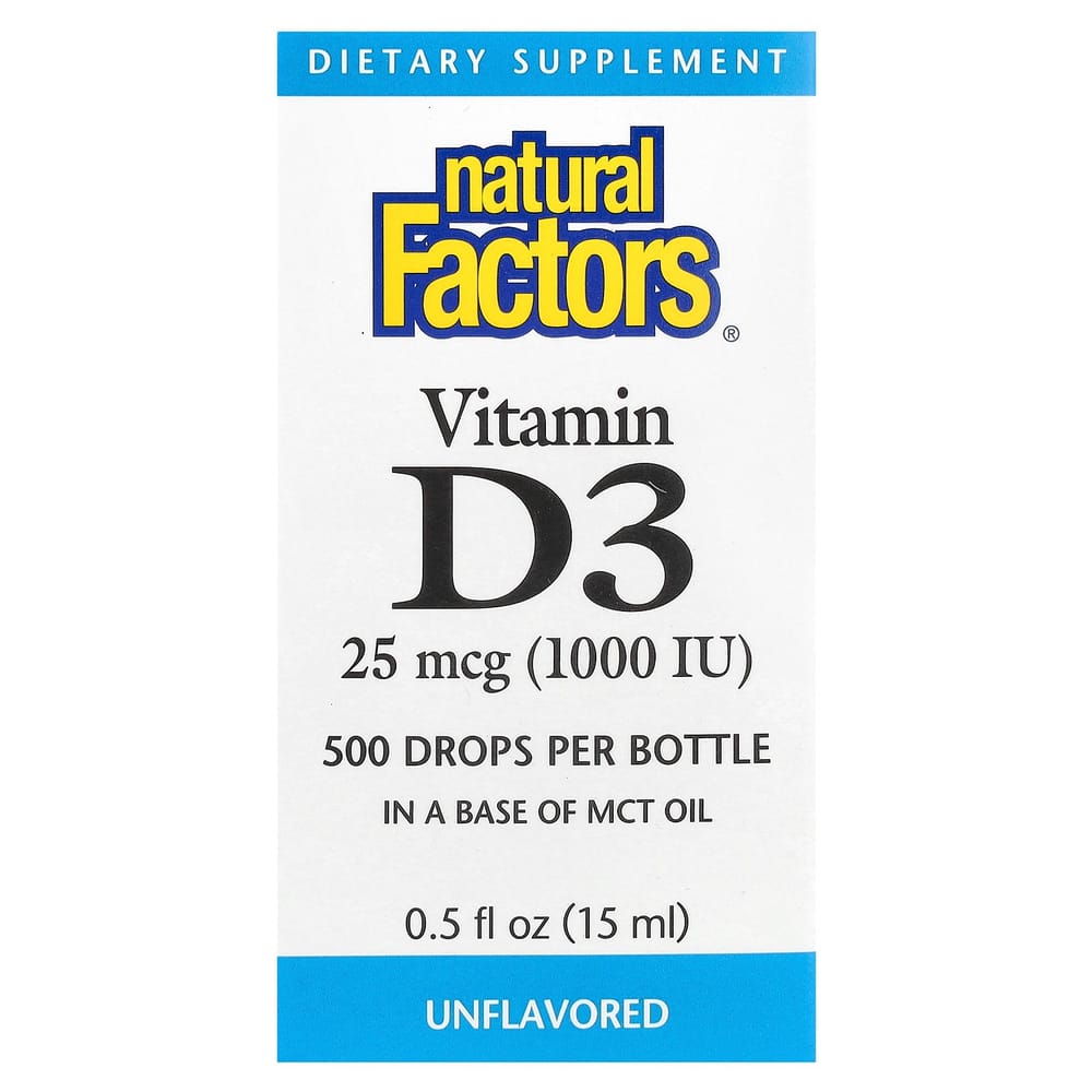 Natural Factors Vitamin D3 Drops Unflavored 25mcg (1000IU) 15ml (0.5 fl oz)