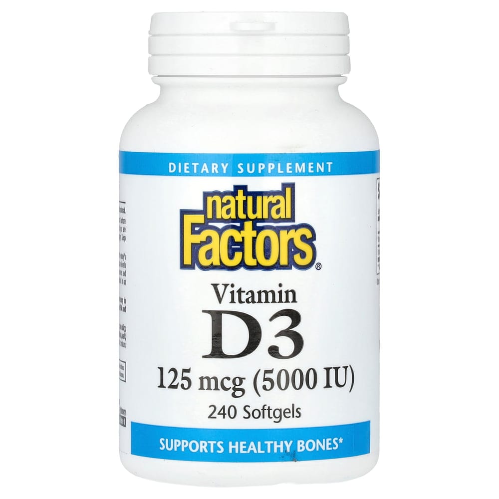Natural Factors Vitamin D3 125mcg (5000IU) Softgels, 240 Count