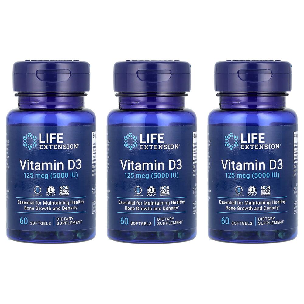 Life Extension Vitamin D3 125mcg (5000 IU) Softgels, 60 Count (3-Pack)