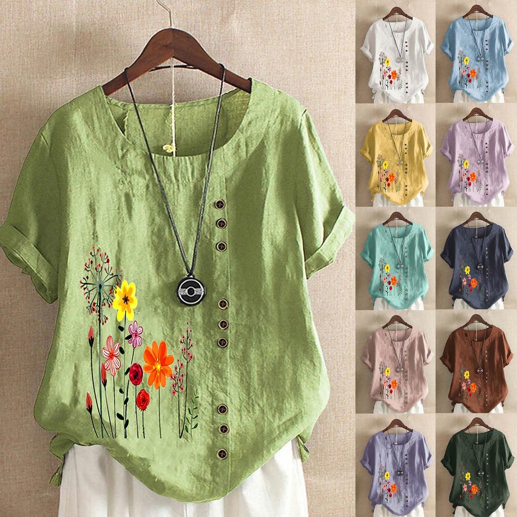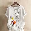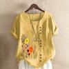 Women's Fashion Loose Cotton And Linen Short Sleeve Printed Temperament Crewneck Top