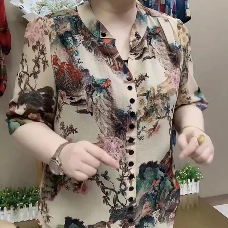 High-end Middle-aged and Elderly Fashion Summer New Loose Tops for Women and the Elderly Clothes Rich Women's Shirts