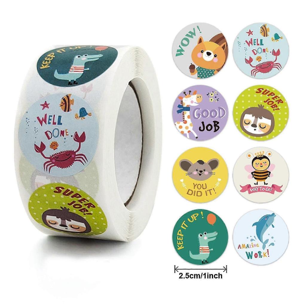 Kids Cartoon Cat Sticker Roll 500-count Stickers Round Teacher Encouragement Motivational Lable - RiRi