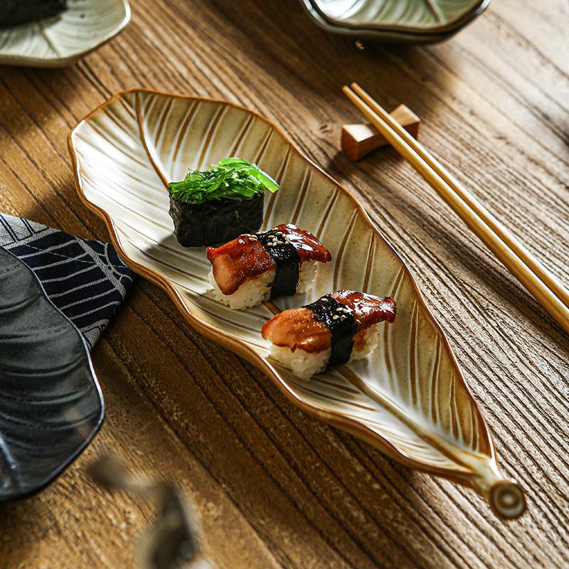 Retro Einfache Blatt Sushi-Platte Keramik Ofenwechsel Haus Restaurant Hotel Teller Fortgeschrittener Atmosphärischer Stil