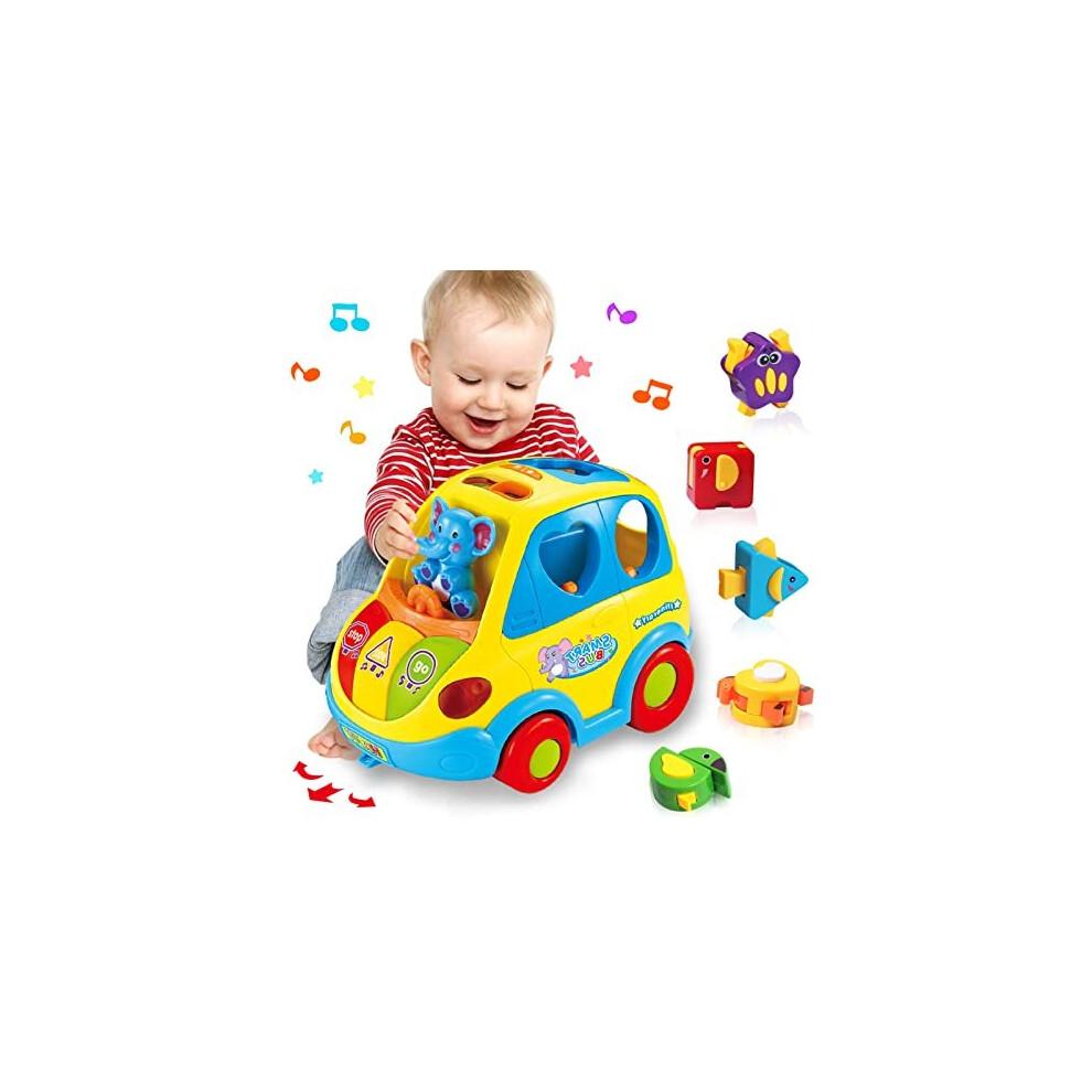 CAEGALKIMY Babyspielzeug für 1-jährige Jungen Mädchen Krabbelauto Formsortierer Spielzeug 6 12 18 Monate Früherziehung Spielzeug mit Musiklicht für den 1. Geburtstag